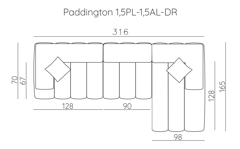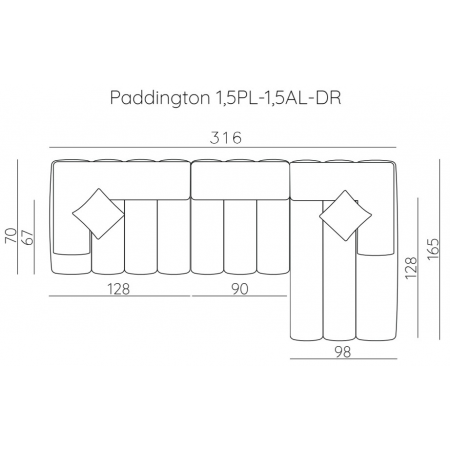 Wymiary: 316 cm x 165 cm (dostępne są inne rozmiary i konfigiracje, sofa jest modułowa)