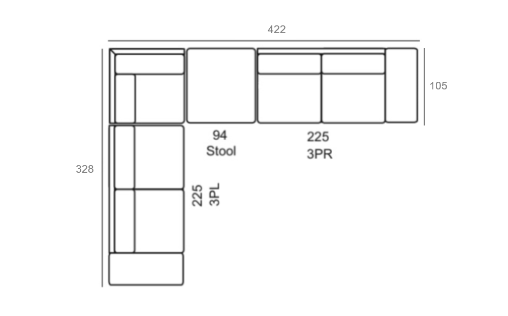 APOLLO 328 cm x 422 cm, niski narożnik z pufą