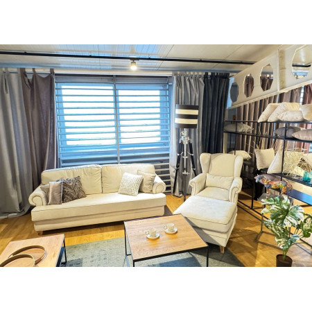 Model posiada bardzo miękkie siedzisko, wykonane z wysoko elastycznej pianki HR z warstwą pianki szarpanej, natomiast poduszki oparciowe z włókna silikonowego. Konstrukcja mebla wykonana jest z wysokiej jakości drewna liściastego.
