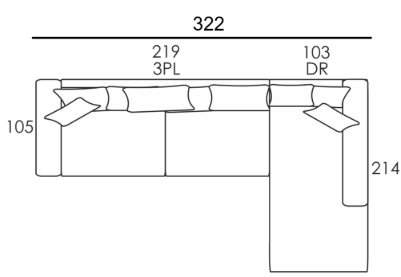 W modelu: trzy siedziska, 7 poduszek oparciowych 60x60 cm, cztery jaśki 45x45 cm.